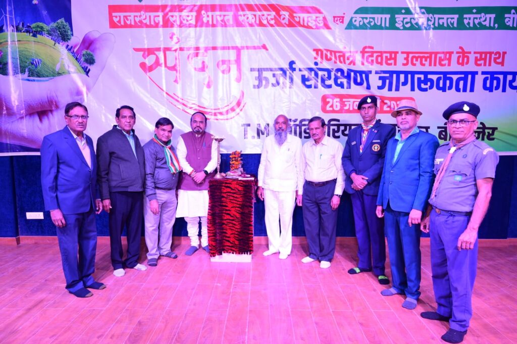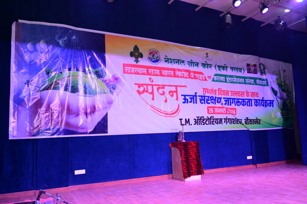 बीकानेर। नेशनल ग्रीन कोर (इको क्लब), राजस्थान राज्य भारत स्काउट व गाइड तथा करुणा इंटरनेशनल संस्था, बीकानेर के संयुक्त तत्वावधान में ऊर्जा संरक्षण जागरूकता कार्यक्रम के तहत “स्पंदन” कार्यक्रम का आयोजन गंगाशहर स्थित टी. एम. आडिटोरियम में 26 जनवरी 2024 को किया गया। कार्यक्रम – समन्वयक गिरिराज खैरीवाल के मुताबिक इस अवसर पर आईटीआई के उपनिदेशक कैलाश शर्मा ने मुख्य वक्ता के रूप में संबोधित करते हुए कहा कि ऊर्जा संरक्षण आज के समय की महती आवश्यकता है। उन्होंने अपने संबोधन में ऊर्जा संरक्षण के अनेकानेक टिप्स देते हुए कहा कि हम छोटी छोटी आदतें अपनाकर रोजाना ऊर्जा संरक्षण कर सकते हैं। कार्यक्रम के मुख्य अतिथि विख्यात अंक व अंग ज्योतिषी, वरिष्ठ कवि एवं साहित्यकार डॉ. कुमार गणेश ने अपने सारगर्भित उद्बोधन में मानसिक ऊर्जा की व्याख्या करते हुए मनोबल के बल पर आगे बढ़ने की प्रेरणा प्रदान की। इस अवसर पर टाटा सोलर सिस्टम के बीकानेर के प्रतिनिधि योगेश वर्मा ने सोलर एनर्जी संबंधित औउपयोगी जानकारी दी।