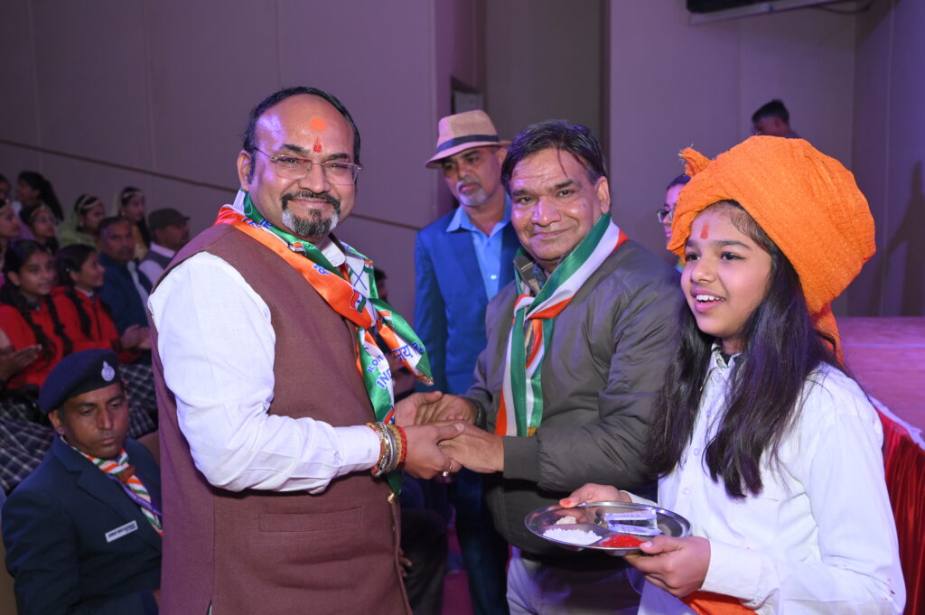 डिसेंट किड्स की कक्षा 6 की छात्रा अश्लेषा खैरीवाल ने सभी अतिथियों का स्वागत तिलक निकालकर किया।