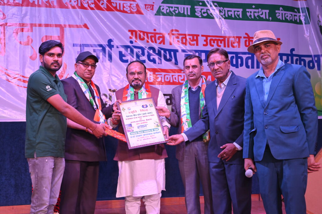 कार्यक्रम में शिरकत करने वाले सभी अतिथियों को तिरंगे दुपट्टे, करुणा साहित्य एवं स्मृति चिन्ह भेंट कर सम्मानित किया गया। कार्यक्रम में विभिन्न जिम्मेदारियों में जुटे जैन पी जी महाविद्यालय के रोवर्स मयंक पंवार, आर्यन दावड़ा, इंद्रजीत सिंह, हिमांशु जोशी, कुशाल दैया, लक्ष्य सेवग, करण सिरोही, हेमंत सुथार एवं नरेंद्र जाट, राजकीय बोथरा बालिका विद्यालय की गाइड्स राजिका राजपुरोहित, माया भूटिया, ज्योति राजपुरोहित, हर्षिता राजपुरोहित, श्री गोपेश्वर विद्यापीठ सैकेंडरी स्कूल की गाइड्स दिशा राजपुरोहित व दिव्या स्वामी तथा स्काउट्स आशीष जीनगर, शुभम आसदेव,महेश बाणिया, निर्मन्यु राजपुरोहित, विनायक राजपुरोहित, लोकेश बाणिया व कपिल बाणिया को भी प्रशस्ति पत्र एवं करुणा साहित्य भेंट कर प्रोत्साहित किया गया।
