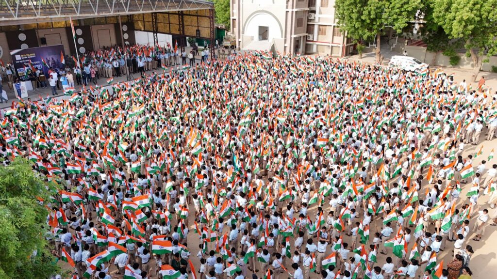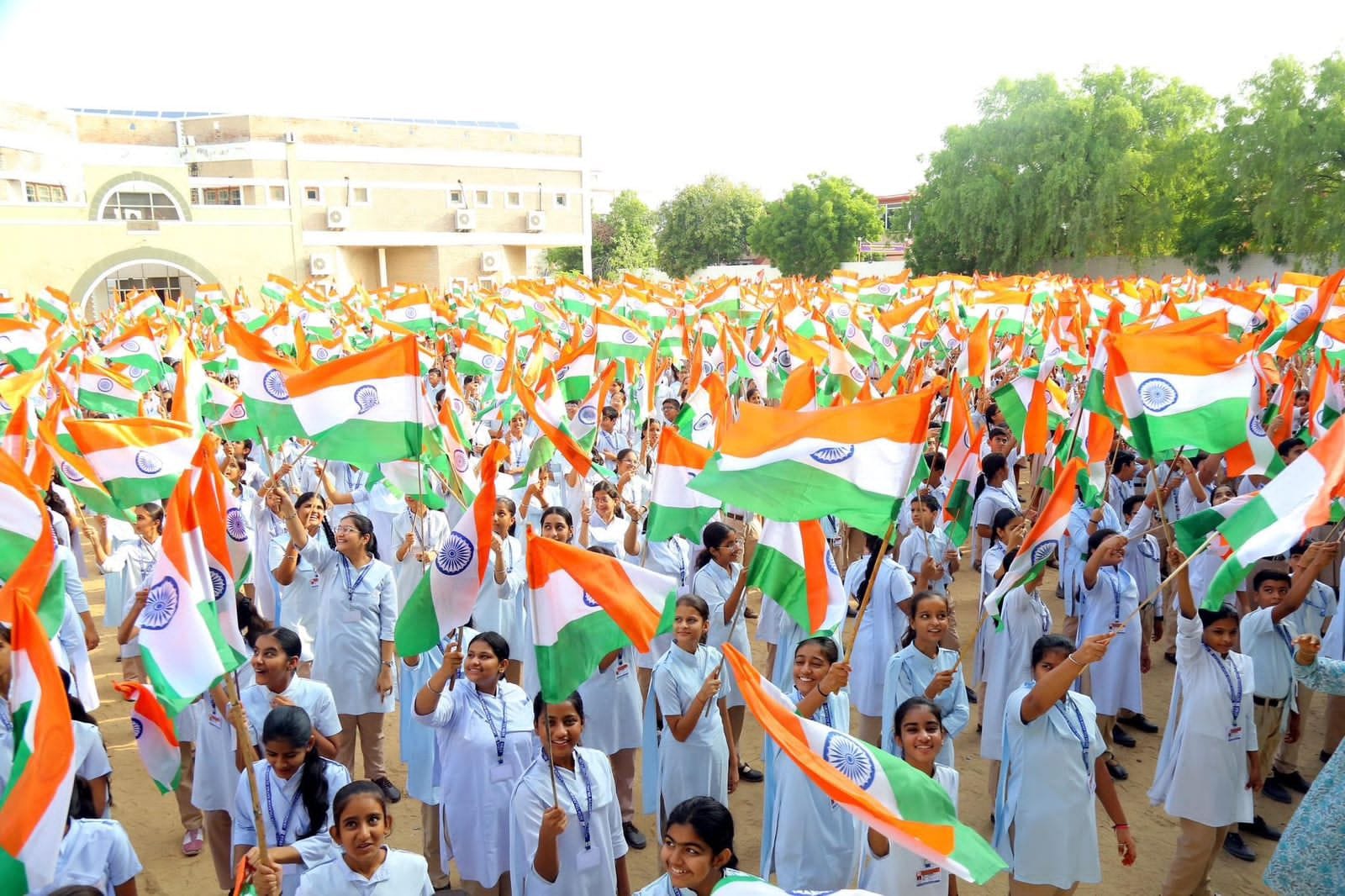 बीकानेर, 12 अगस्त। ‘हर घर तिरंगा’ अभियान के तहत सोमवार को सेठ तोलाराम बाफना अकादमी में केंद्रीय कानून मंत्री अर्जुन राम मेघवाल ने 3 हजार से अधिक विद्यार्थियों के साथ तिरंगा लहरा कर राष्ट्रीय एकता की भावना को प्रबल किया। इस दौरान स्टूडेंट्स के जोश – जज्बे और जूनून को देखकर केंद्रीय मंत्री अभिभूत हो गए। श्री मेघवाल ने शाला परिसर में ध्वजारारोहण करते हुए कार्यक्रम की शुरुआत की और राष्ट्र ध्वज के महत्व पर प्रकाश डाला।